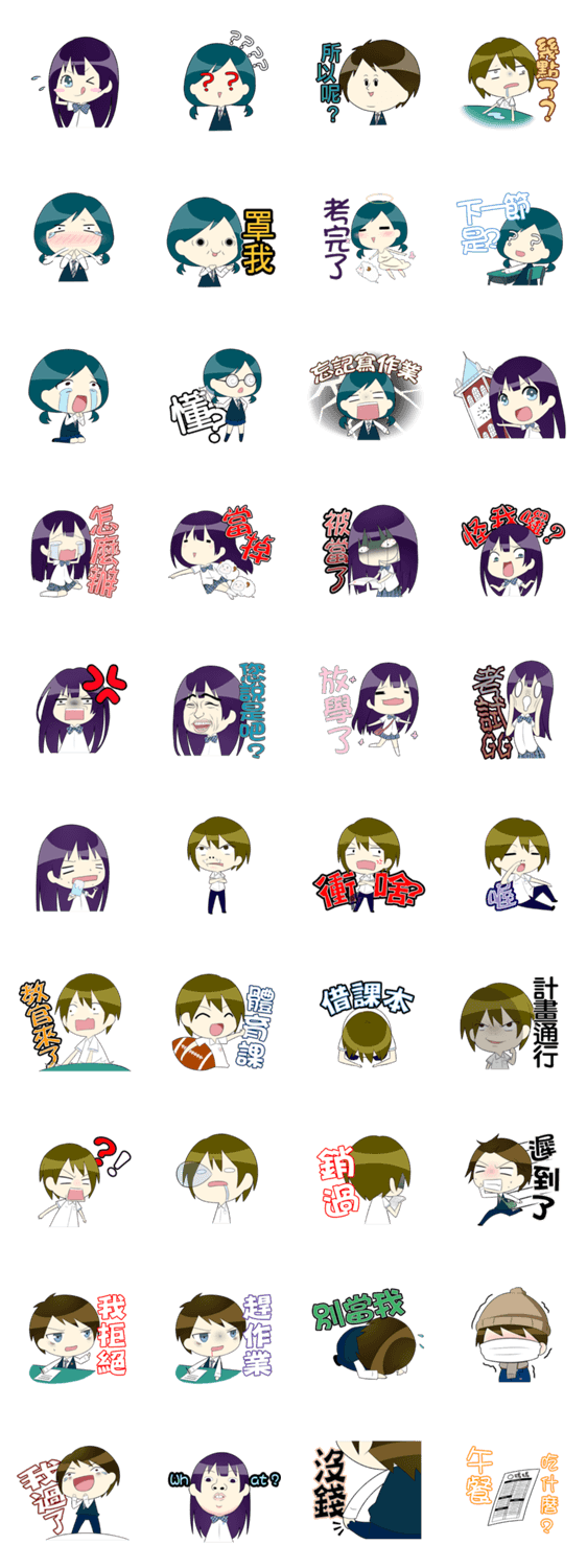 | スタンプ説明 | The first high school of Taiwan, is celebrating its130th Annversary. Students of Creative Design Department present you with school-life chartlets Part 2. |