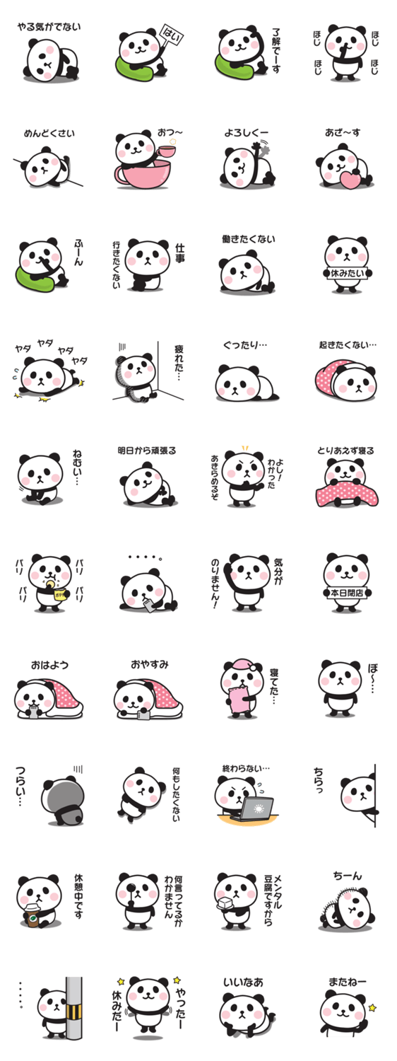 ぱんだのいまいちやる気が出ない時に使うスタンプです。
