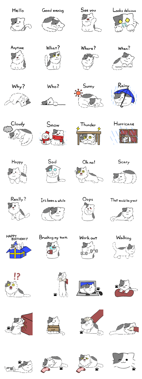 長毛灰白トビ柄にゃんこ3(英語) -LINEスタンプマニア