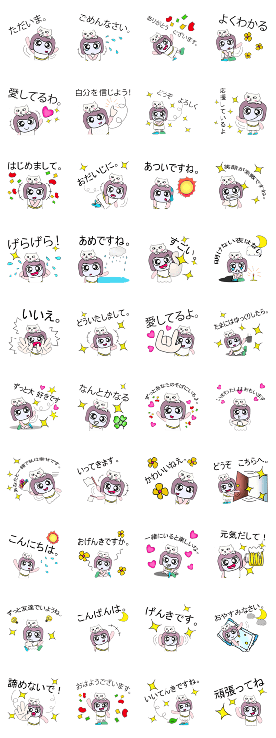 白ネコのあいうえお・・・ってるスタンプ