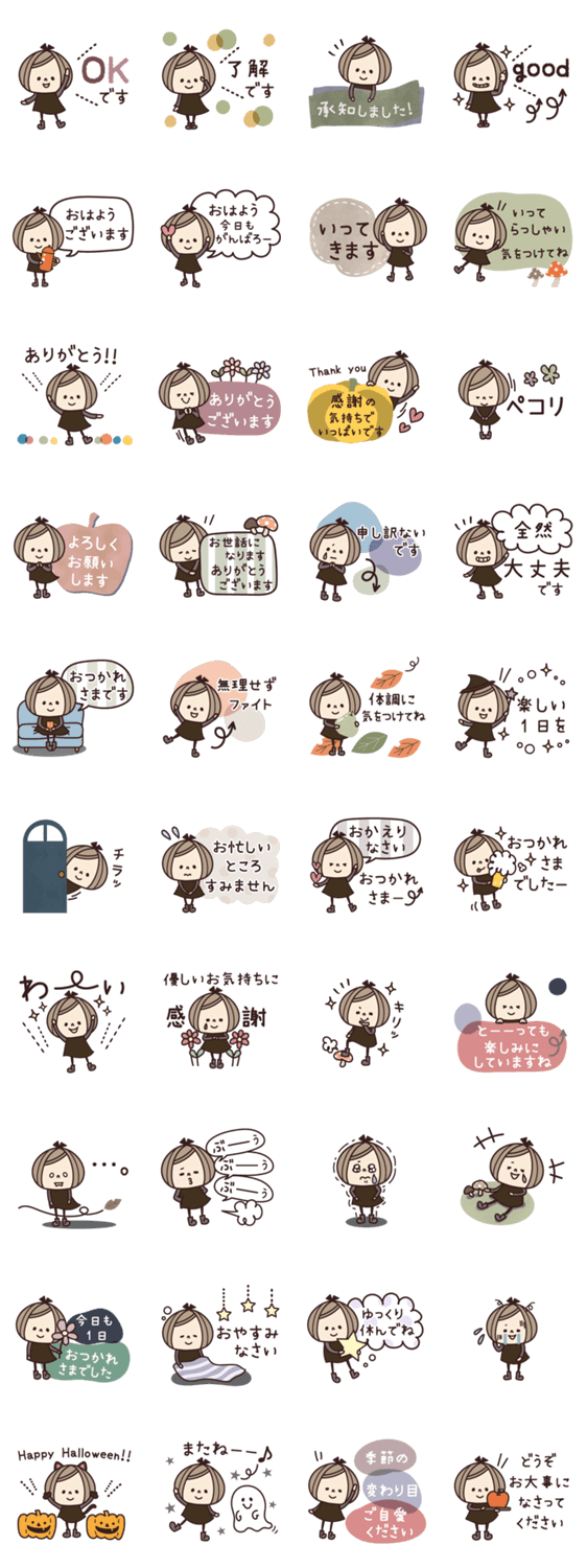 大人シンプルなおしゃかわな♡女の子。ハロウィンに使えるスタンプも入っています♪