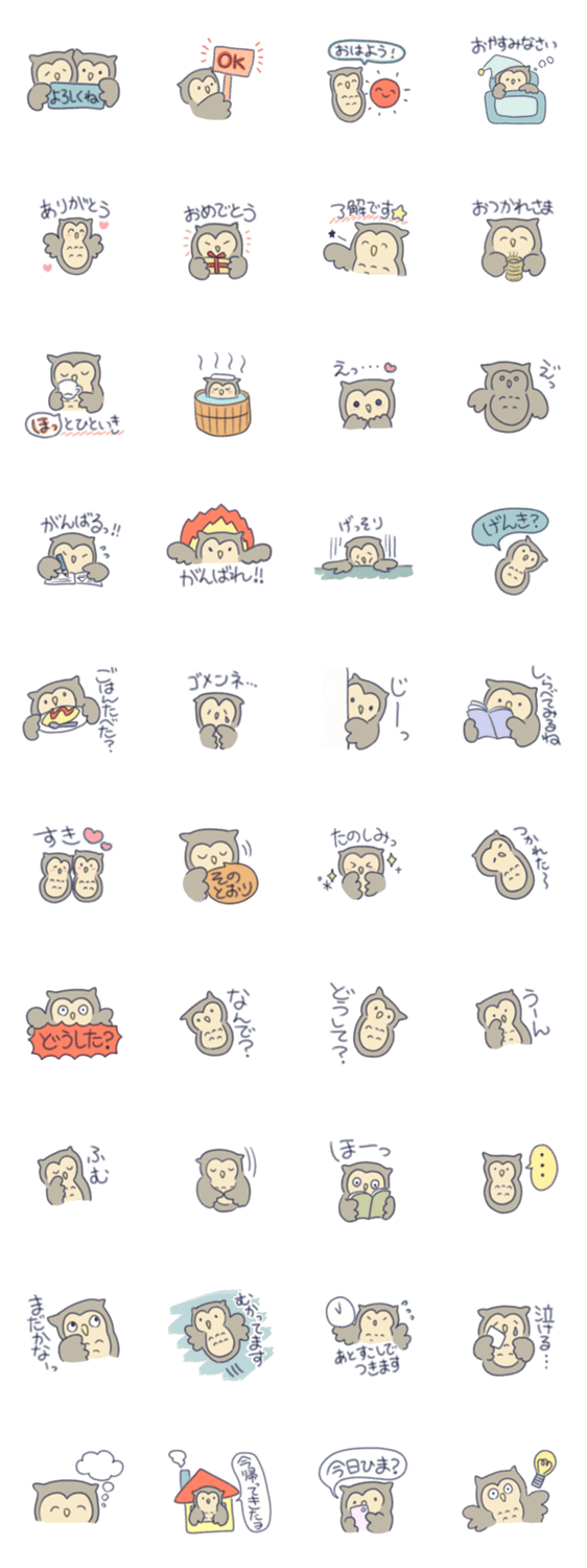 お勉強が大好きな頑張り屋のフクロウ。 家族や友達に気軽に使えるスタンプです!ホーホー