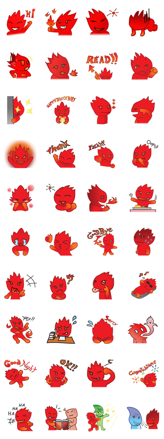 | スタンプ説明 | Burn!! agent Fire element red hot. Latent warmth And vibrant Representatives of enthusiasm and inspiration.The Character hottest party like you !! |
