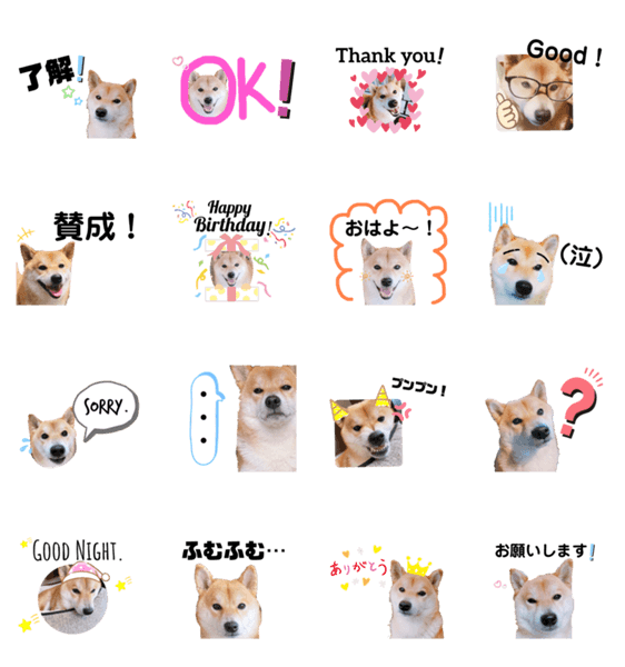 柴犬のそらの写真入りスタンプです。お礼から、お祝いまで幅広いスタンプの種類があります!可愛くて使いやすいので、いつものトークがもっと楽しくなるかも⁈