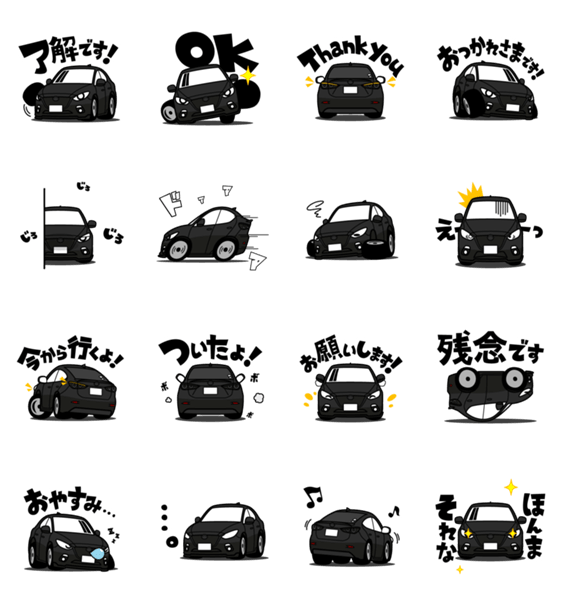 クールな目つきのジェントルなセダンのスタンプです!友達同士で、チームのグループLINEで、愛車をアピールしちゃおう!