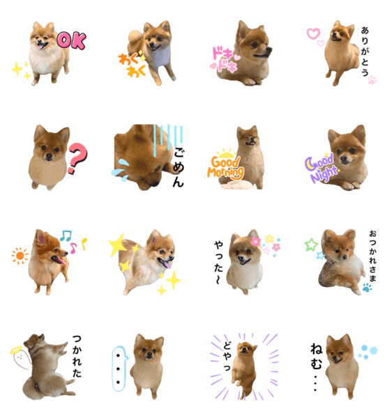 ポメラニアンのふうたです。 日常で使えそうなスタンプ作ってみました♫ 犬好き、ポメラニアン好きな方におすすめです♡