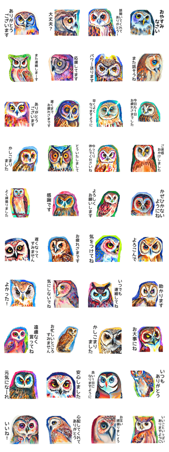 フクロウの水彩スタンプ 思いやり&気づかい -LINEスタンプマニア