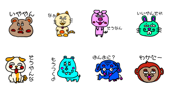 アニマルズ/普段使い/おもしろ/日常会話/面白い/ゆるかわ/動物/ねこ/いぬ/ぞう/かば/くま/さる/うさぎ/ぶた/関西弁
