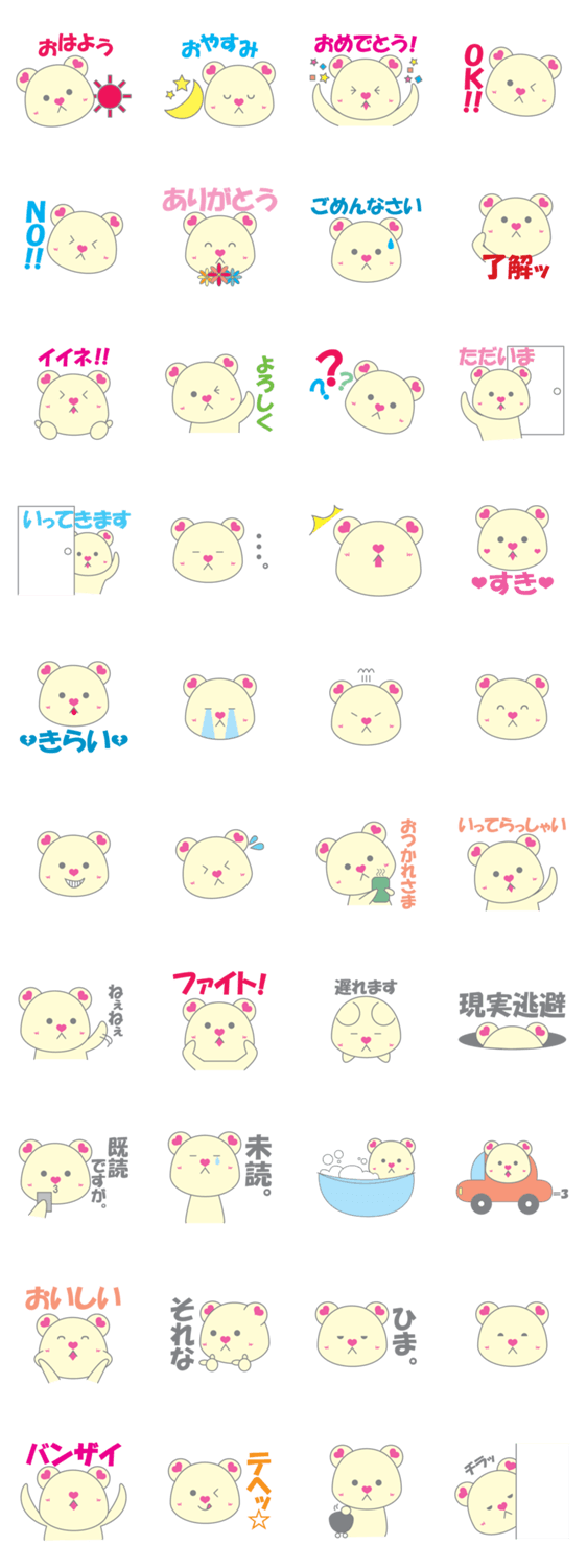 らぶべあの一言日常スタンプ。友達や家族、恋人との日常会話に使えます。
