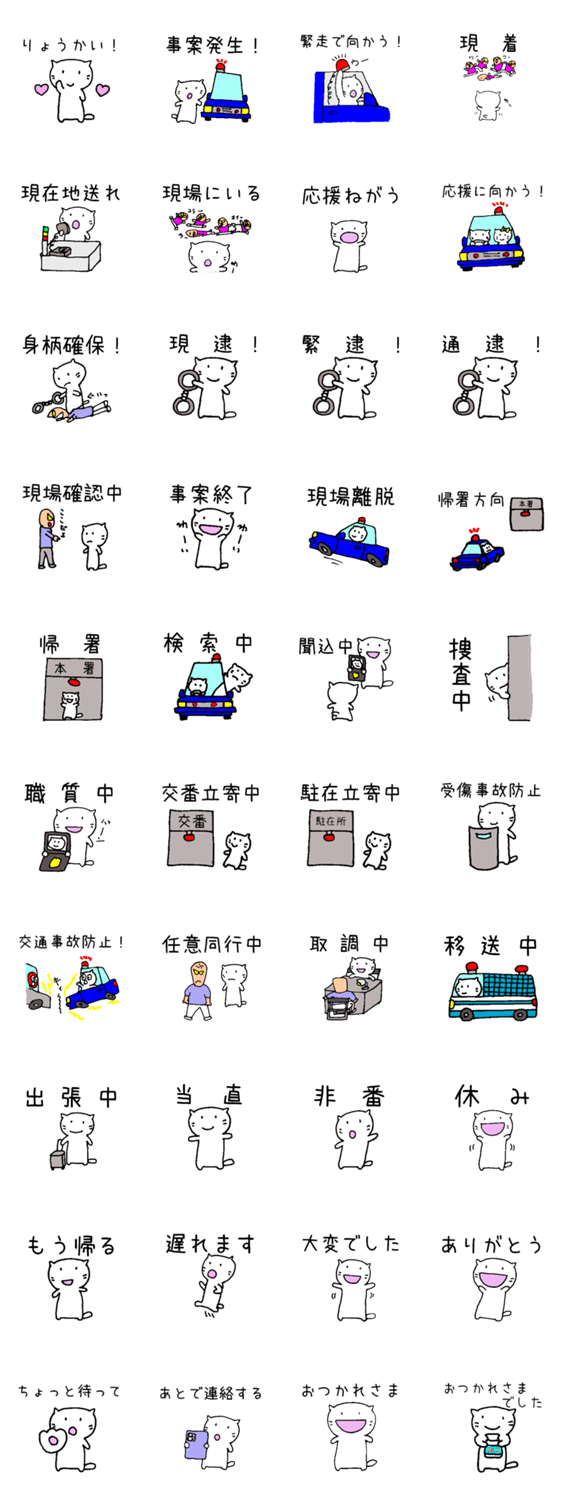 警察の内勤当直員用スタンプです!仕事でも使えるようなものですので是非活用してください!癒し系の 「にゃあた」です!