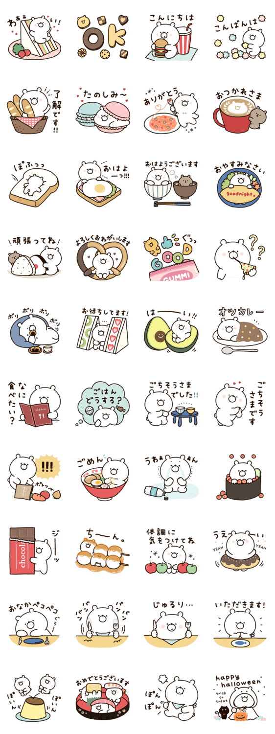 ゆるかわ♡スイーツやパン、お寿司など食べ物とくまさんのスタンプです!ハロウィンにも♪