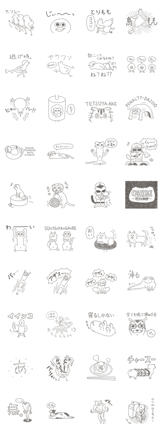 日常の中でつい描いてしまった、全くまとまりのないらくがき達をそのままスタンプにしました。トーク画面に落書いてやってください!