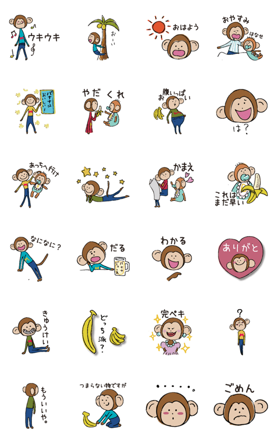 猿とバナナのスタンプです。