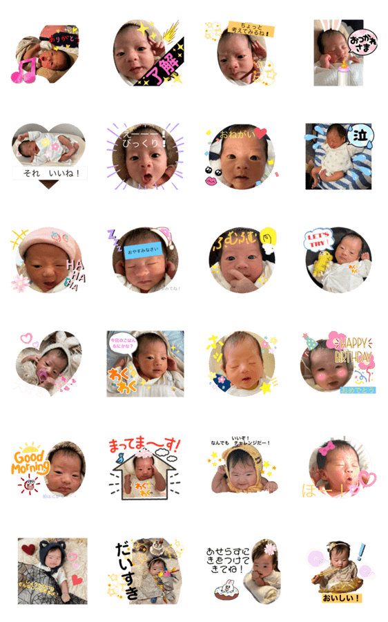 生後0ヶ月〜3ヶ月までのナイスな表情でつくったスタンプです。