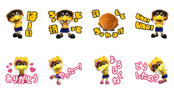 ベガルタ仙台マスコット、ベガッ太&ルターナの実写版LINEスタンプ。2羽の監修のもと、表情豊かな8種がセットです。 2023年1月末日までの期間限定販売のベータ版です。