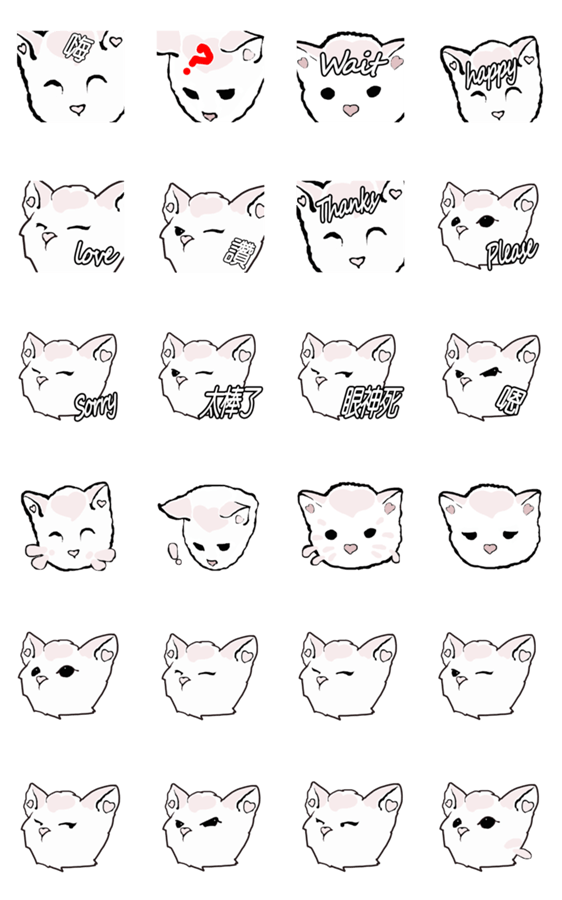 Hi.Wait.happy.love.Like.Thanks.Please.Sorry.Awesome.Die eyes.