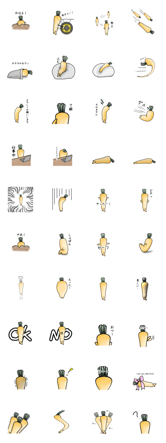 短足なにんじんです。親しい友人と使えるような、シンプルなスタンプにしました。