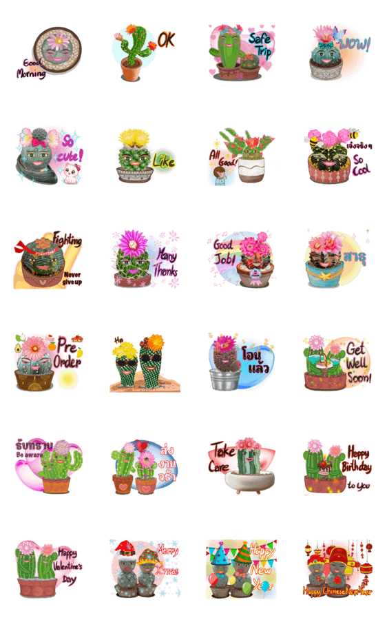 | スタンプ説明 | サボテンは色とりどりの花を咲かせます。 たくさんのサボテンを植えて、みんなが友達に送れるように、愛を込めて My Cactus Lover ステッカーを描きました。 |