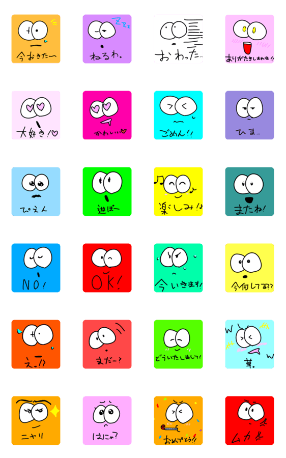 10歳の娘が描いたくりくりおめめちゃんのスタンプです。日常に使えます。