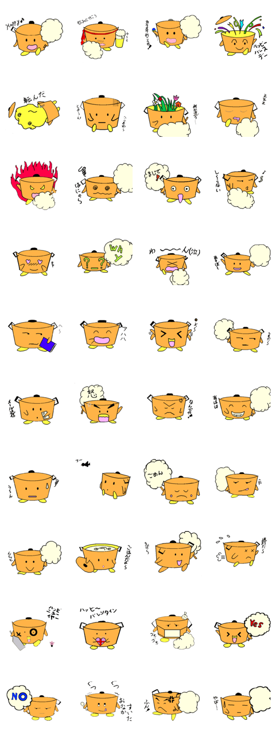 本名ワタナベ、通称なべちゃんが怒ったり泣いたり。バレンタインには照れながらチョコを渡してみたりトークに使える様々なスタンプを用意しました。