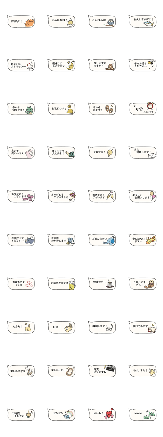 日常でよく送る言葉を吹き出しにしました。 家族、友人、職場etc…色々な場面で気軽にポンっと送れます!