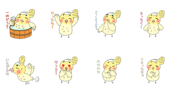 お酒とお風呂が好きなインコちゃんがスタンプに登場しました!