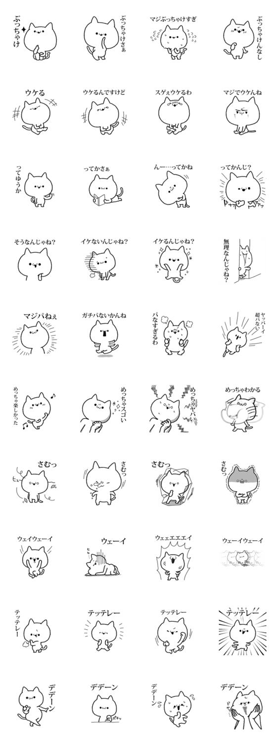 白ネコのあいうえお・・・ってるスタンプ
