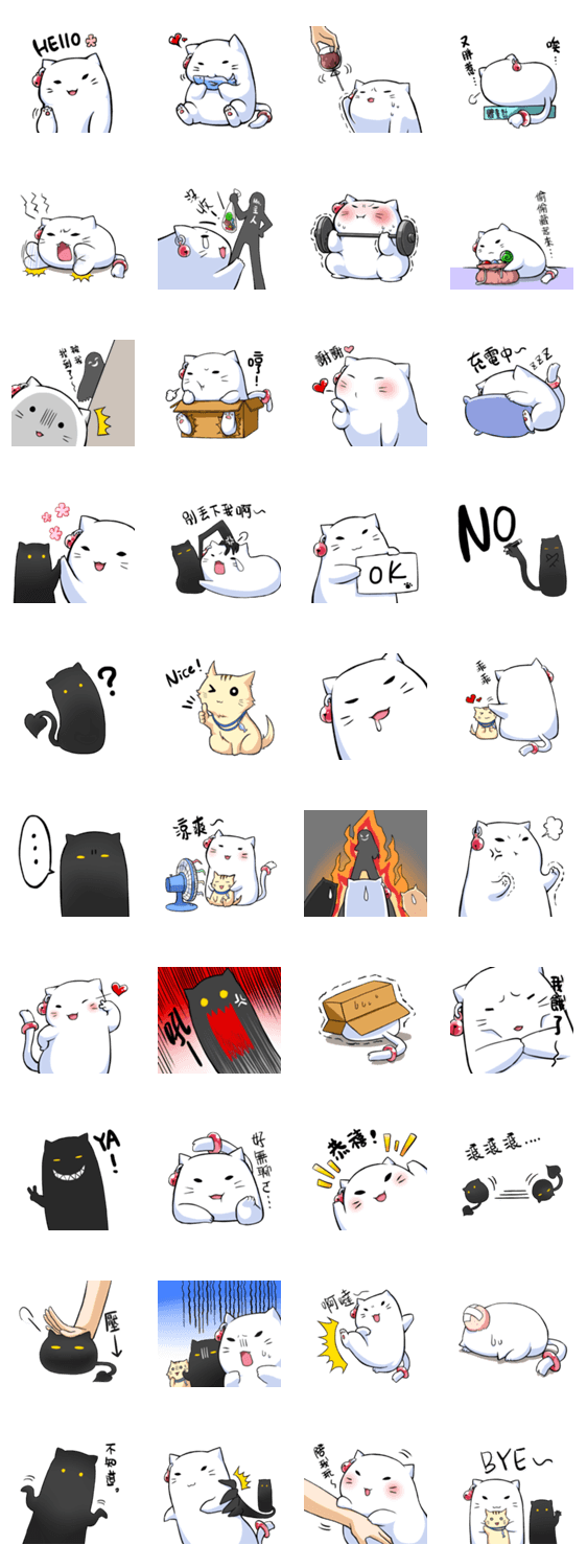 白ネコのあいうえお・・・ってるスタンプ