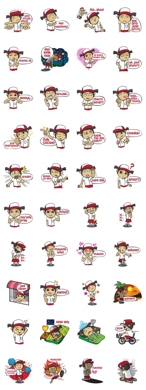Sarini is elementary school student, she is cute and adorable girl. Let her coloring your chat with her funny expressions.