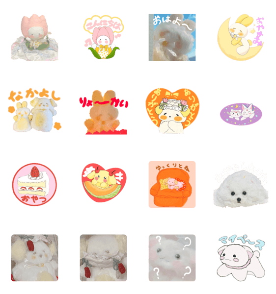 あたたかみのあるぬいぐるみと手描きのスタンプです♡