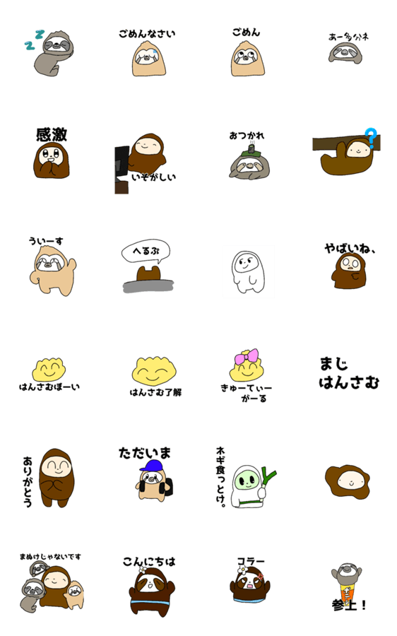 スタンプ説明 ナマケモノと謎生物のスタンプです。