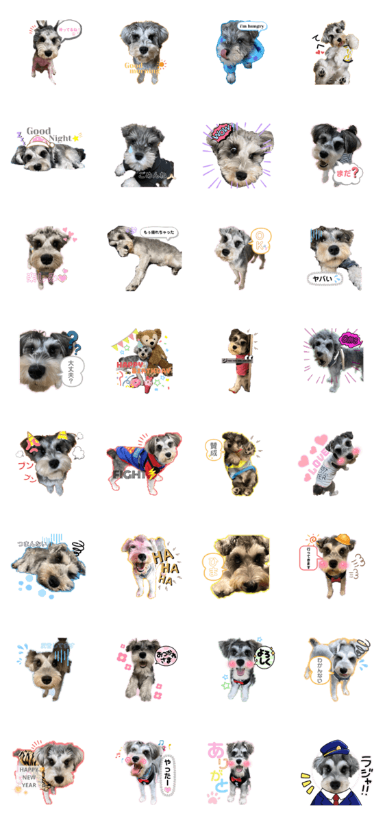 愛犬のミニチュアシュナウザーのノアです。表情豊かなノアの写真をスタンプにしました。