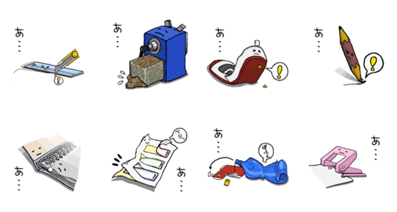 | スタンプ説明 | 文房具を使うときの「やっちまった」を、ビジュアルで表現してみました。 |