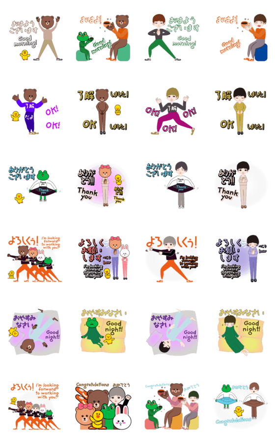 | スタンプ説明 | BROWN & FRIENDSのハッピースタンプ!ヨガ&コーヒー&カンフー日本語 & English の挨拶の基本。同じ挨拶でも4タイプずつあります。 ※BROWN & FRIENDS をみんなでつくろう!キャンペーン参加スタンプです |