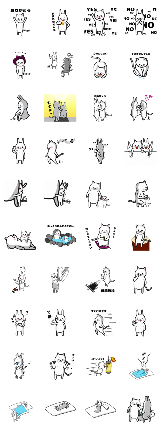 うさぎとねこと子ねこの家族のかわいいスタンプです。