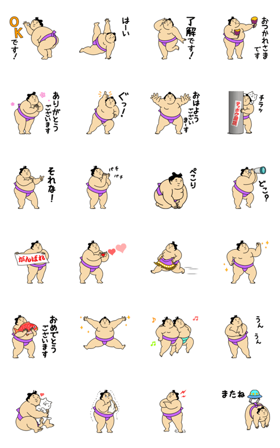 かわいい力士「おすもうちゃん」動くスタンプ。使いやすい表現を揃えました!相撲大好きなあなたも、そうでない方も、日常会話を盛り上げてね。
