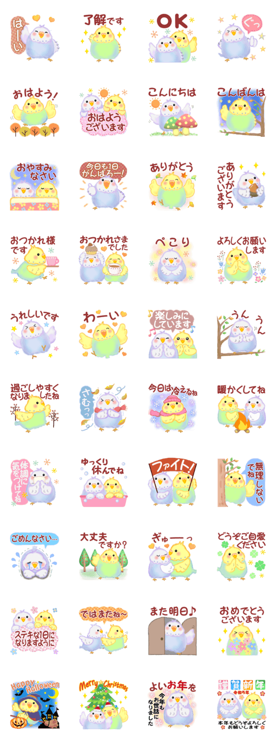 仲良しインコさん「秋から冬へ」 -LINEスタンプマニア