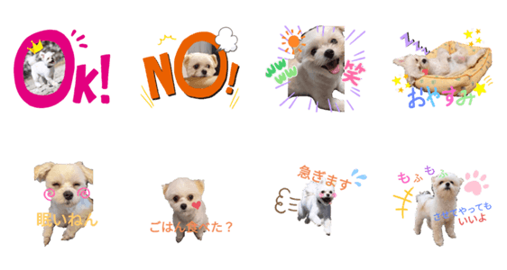 うちのほたてちゃんスタンプです。ポメラニアンとマルチーズのMIX犬。マルポメの女の子( ơ ᴗ ơ )