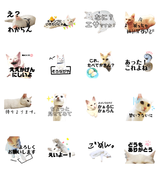 白ネコのあいうえお・・・ってるスタンプ