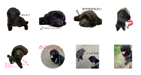 黒チワプーノアの何気ない日常で使えそうなスタンプです。イヌって表情豊かです。
