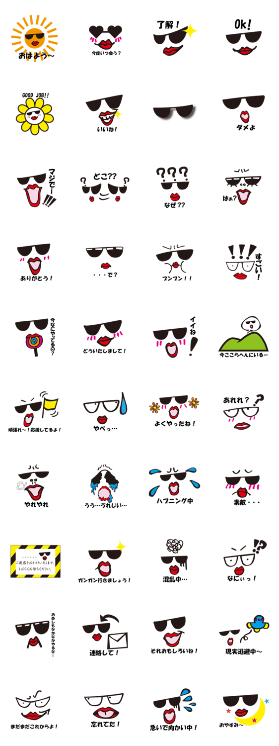 海外で大人気!!SUNSのサニーです。サングラスと赤いリップとベロが特徴のスタンプです。使えばあなたに対する注目度アップ!!
