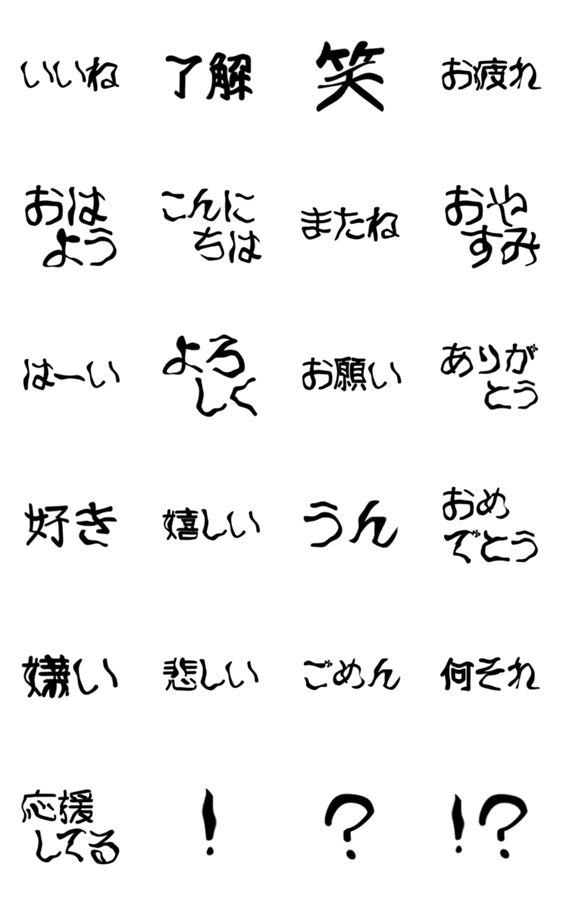 落ち着きがなく 激しく荒ぶるように見えて、情緒不安定で弱々しくも見える文字。「おはよう」「了解」等、日常で良く使う表現を集めました。家族、友達、カップルで是非。