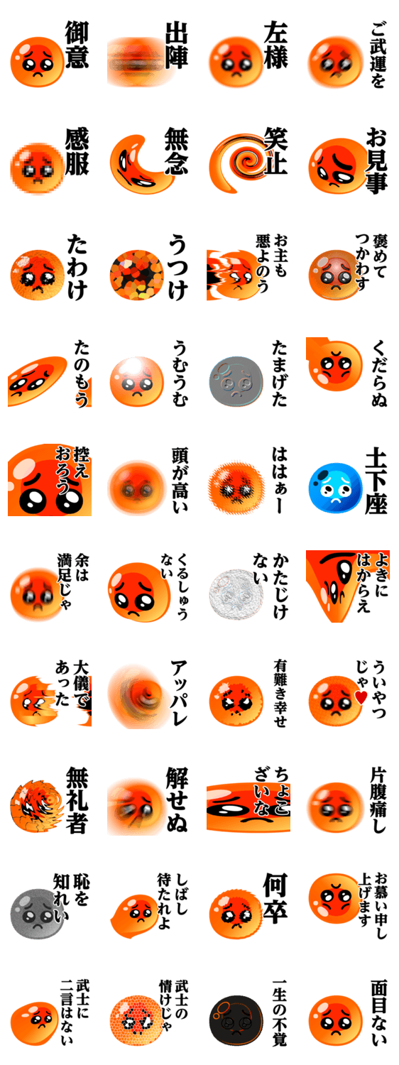 | スタンプ説明 | ぴえんいくら/ピエン/PIEN/イクラ/IKURA/毎日使える/日常会話/時代劇/殿様/武士/戦国時代/侍/お代官様/家臣/忍者 |