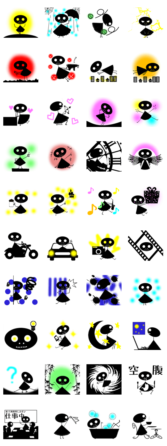 ほねほね女子の静かな影絵スタンプです。日常会話に添えて下さい。