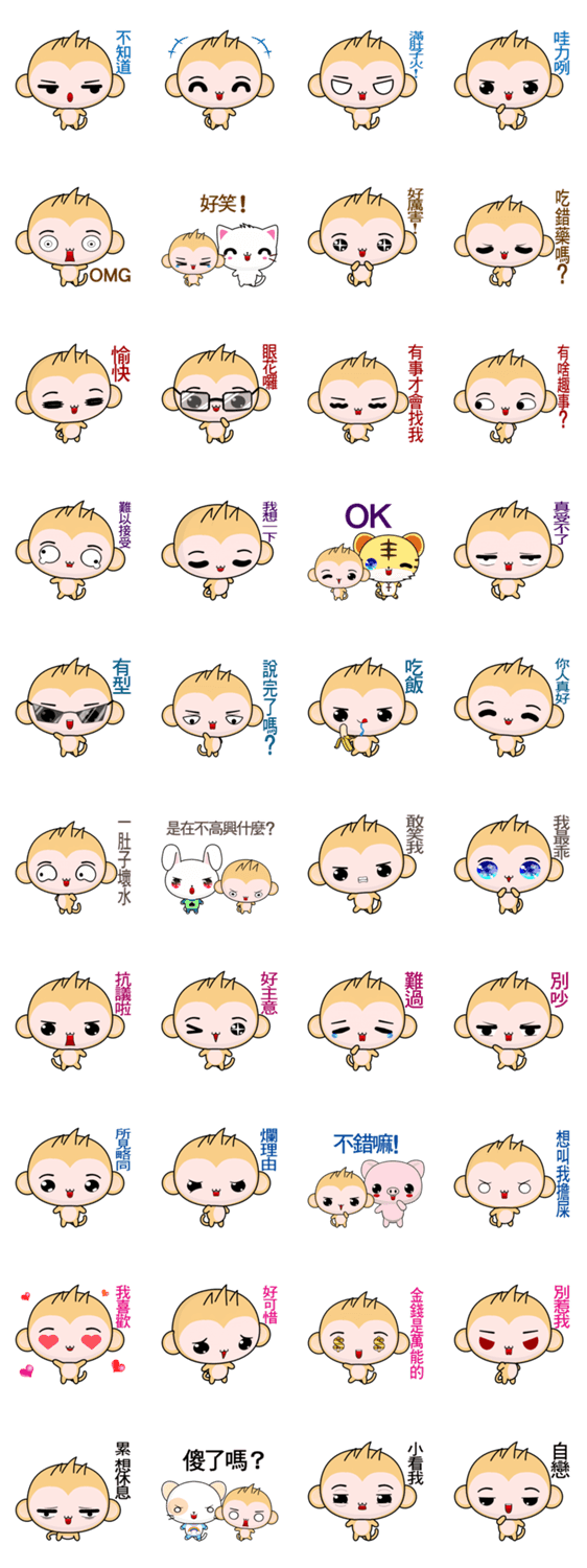 QQ Round Monkey (Happy days) -LINEスタンプマニア
