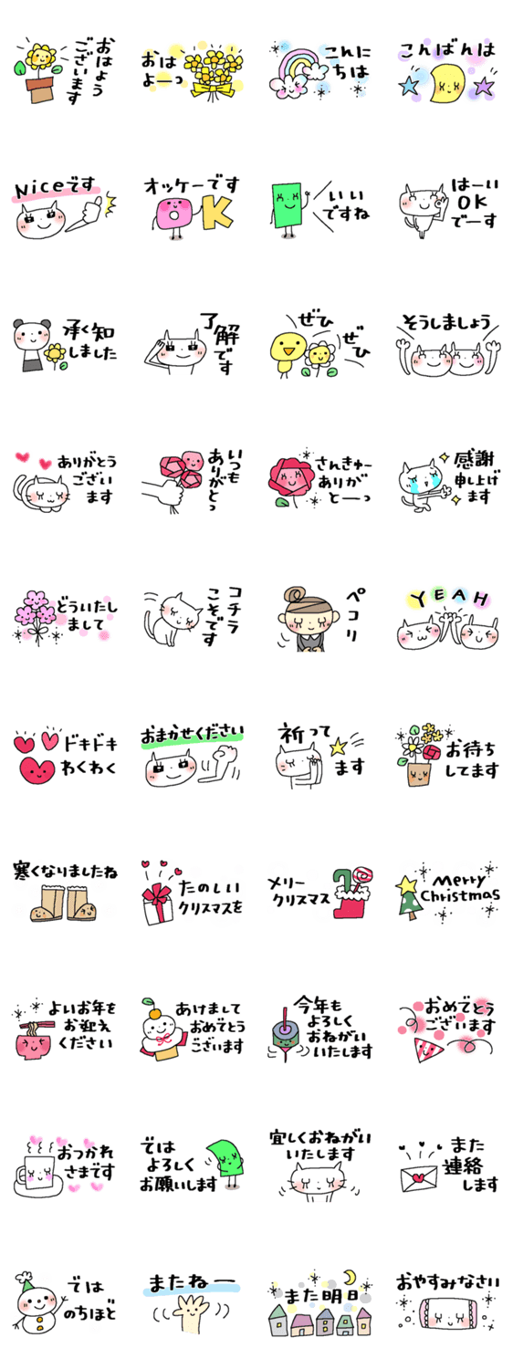 シンプルでサクっと気持ちが伝わる簡易スタンプ。毎日よく使う言葉に加え、クリスマス、年末年始のご挨拶もあり、きっと便利にお使いいただけます。心をこめて贈ります。