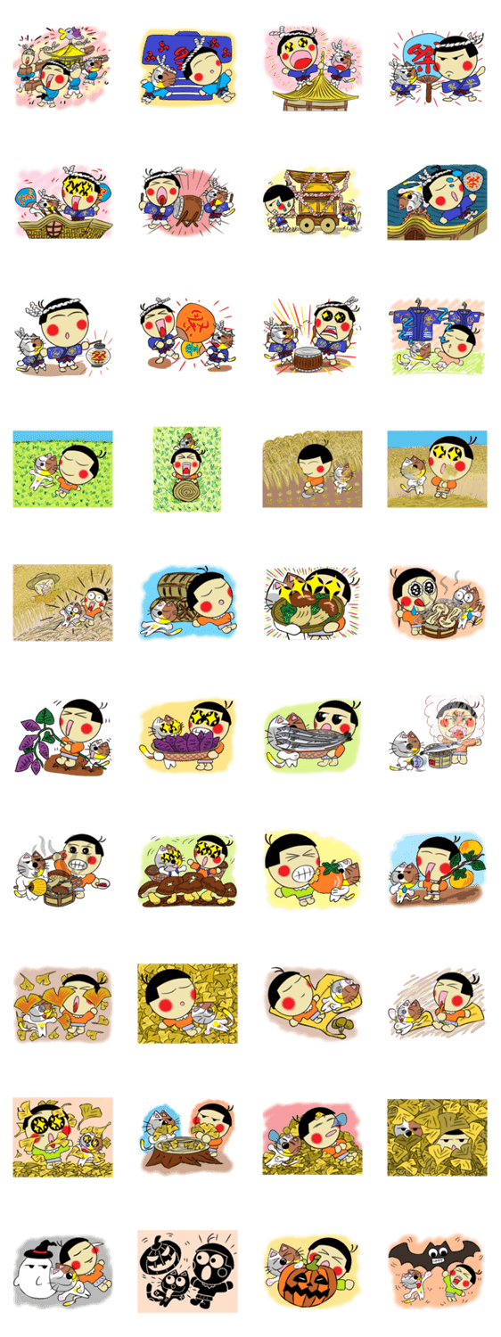寝ぐせのなおちゃん17作目は、秋ver.2。お祭り、稲刈り、松茸狩りに旬のサンマなど食欲の秋。もちろん、ハロウィンもありの盛りだくさん楽しい秋♪