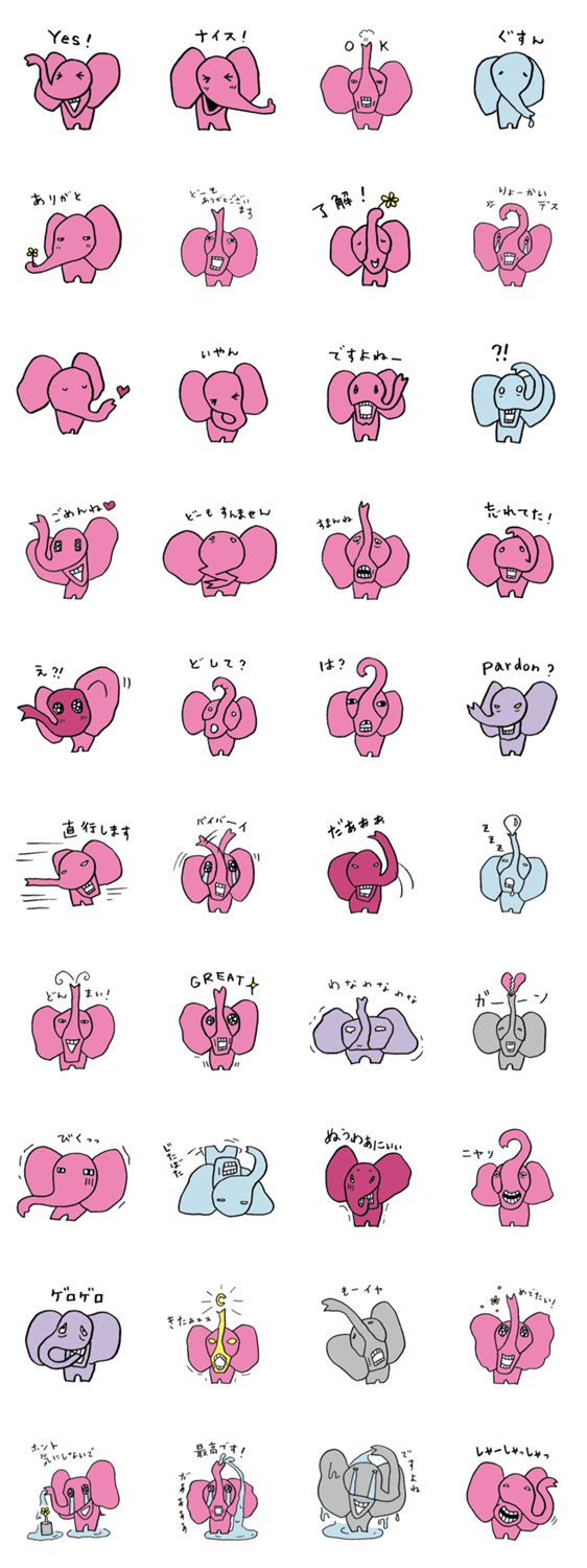 | スタンプ説明 | アーティストCoccoによる直筆!象の“エレ子”登場!絵心いっぱいの楽しいスタンプになりました!日常で使えるスタンプが満載! |