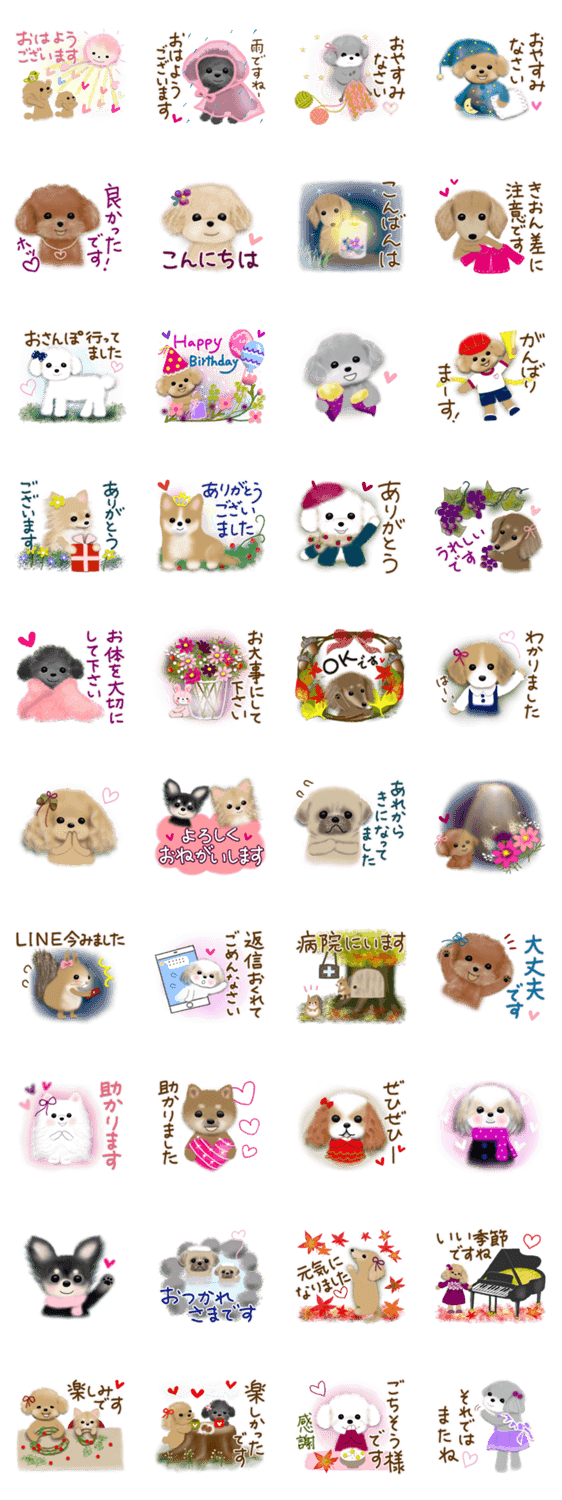 使いやすい丁寧な言葉の、気づかい&挨拶スタンプです^^ワンちゃんがいっぱい! 秋〜冬仕様となっています♡