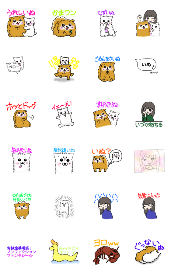私が飼っている不死身の犬、コンソメとしらたきとその他のスタンプができました。使ってほしいぬ。